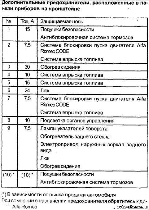 Схема автомобиля — Альфа Ромео 156 — предохранители
