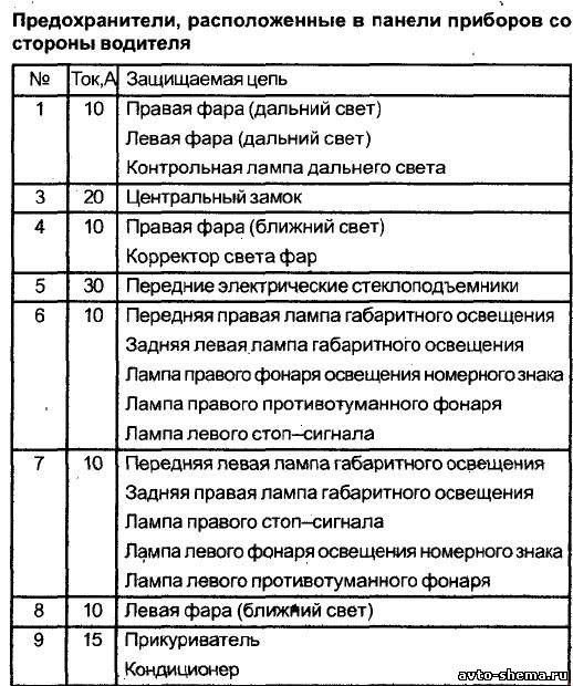 Расоложение предохранителей находящихся на панели приборов на кронштейне