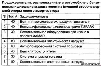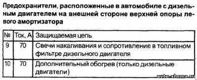 Предохранители расположенные на внешней стороне верхней опоры левого амортизатора